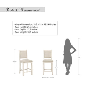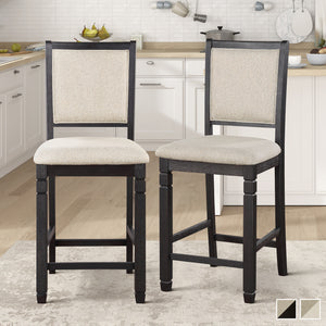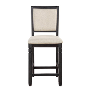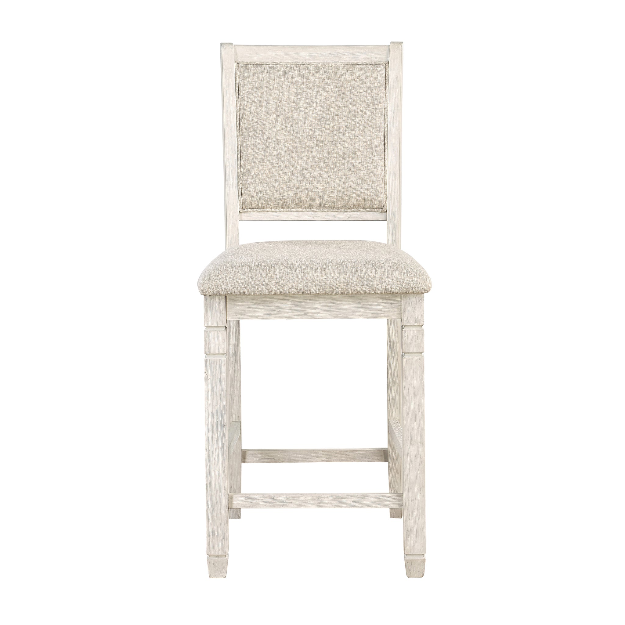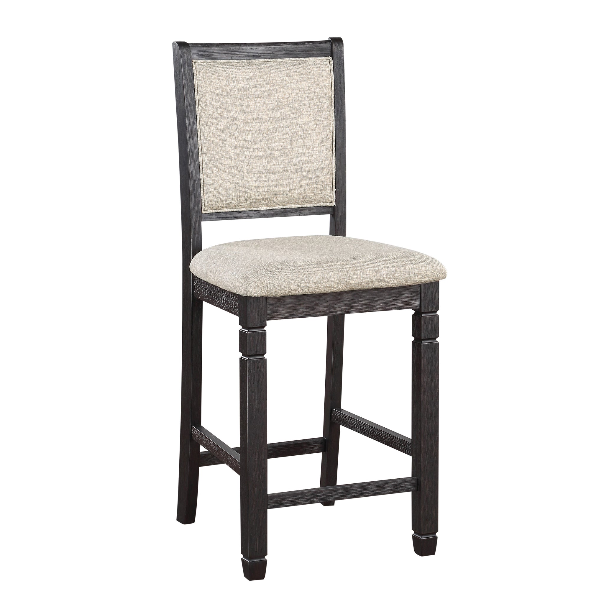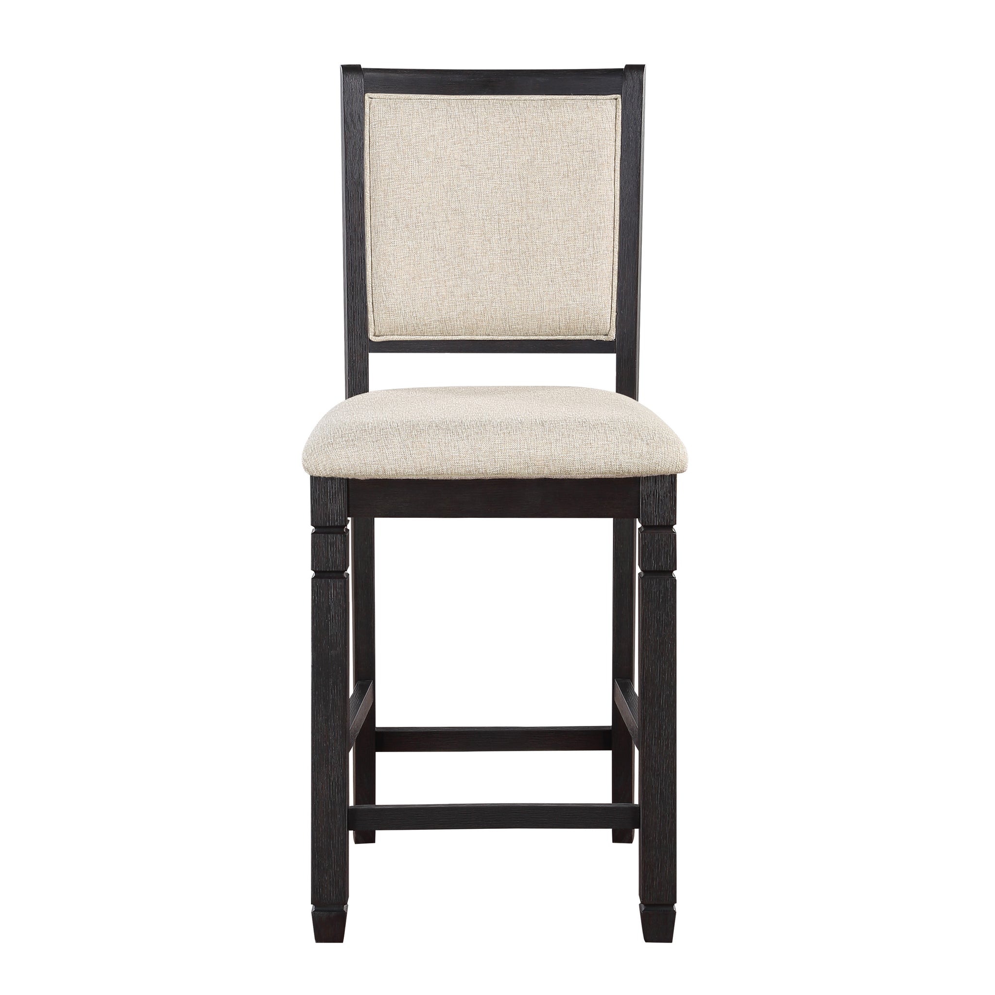 The transitional style of the Howth Collection creates a versatile platform to inspire your casual dining room décor. The antique white or antique black finish over acacia veneer serves to highlight the wood-framed counter height chair's grain while allowing for maximum versatility in decorative accenting with the beige fabric seats providing complementing contrast.
