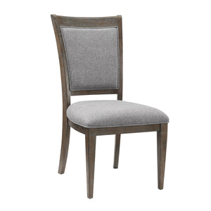 With a style that fits the transitional aesthetic of your home, the Grayling Downs Collection is sure to become a perfect platform for your mealtime activities. Ash veneer is highlighted with a driftwood brown finish for a wonderfully weathered aesthetic. The wood framed side chair features gray fabric seat and back that lend complementing contrast to the look of the collection.