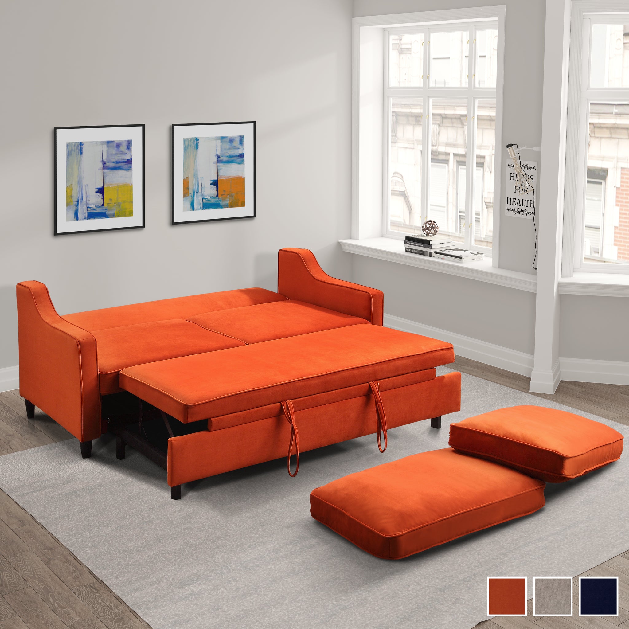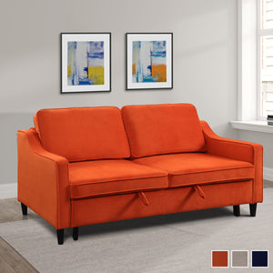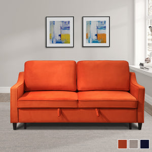 With versatility of function, the Fremont & Park Edelweiss Collection presents as a unique seating option for your household. The pull-out bed and click-mechanism seat back of this sofa engage to create a platform for sleeping or relaxing. The seatback cushions are removable as well as reversible. Offered in navy, and cobblestone velvet cover for bold decorative placement and soft touch, the classic profile furthers the placement ability within a number of home environment.