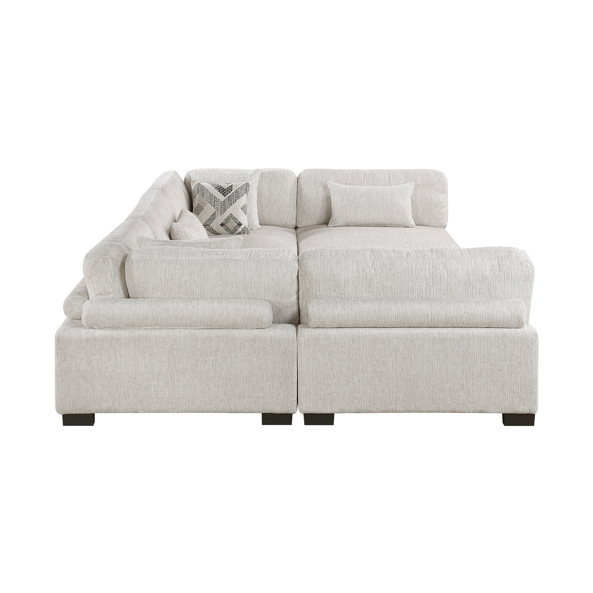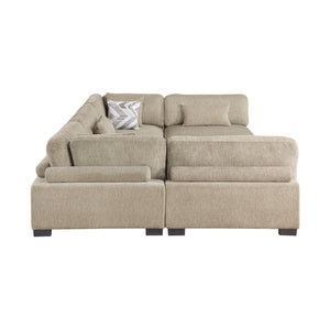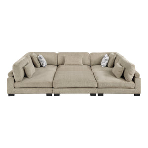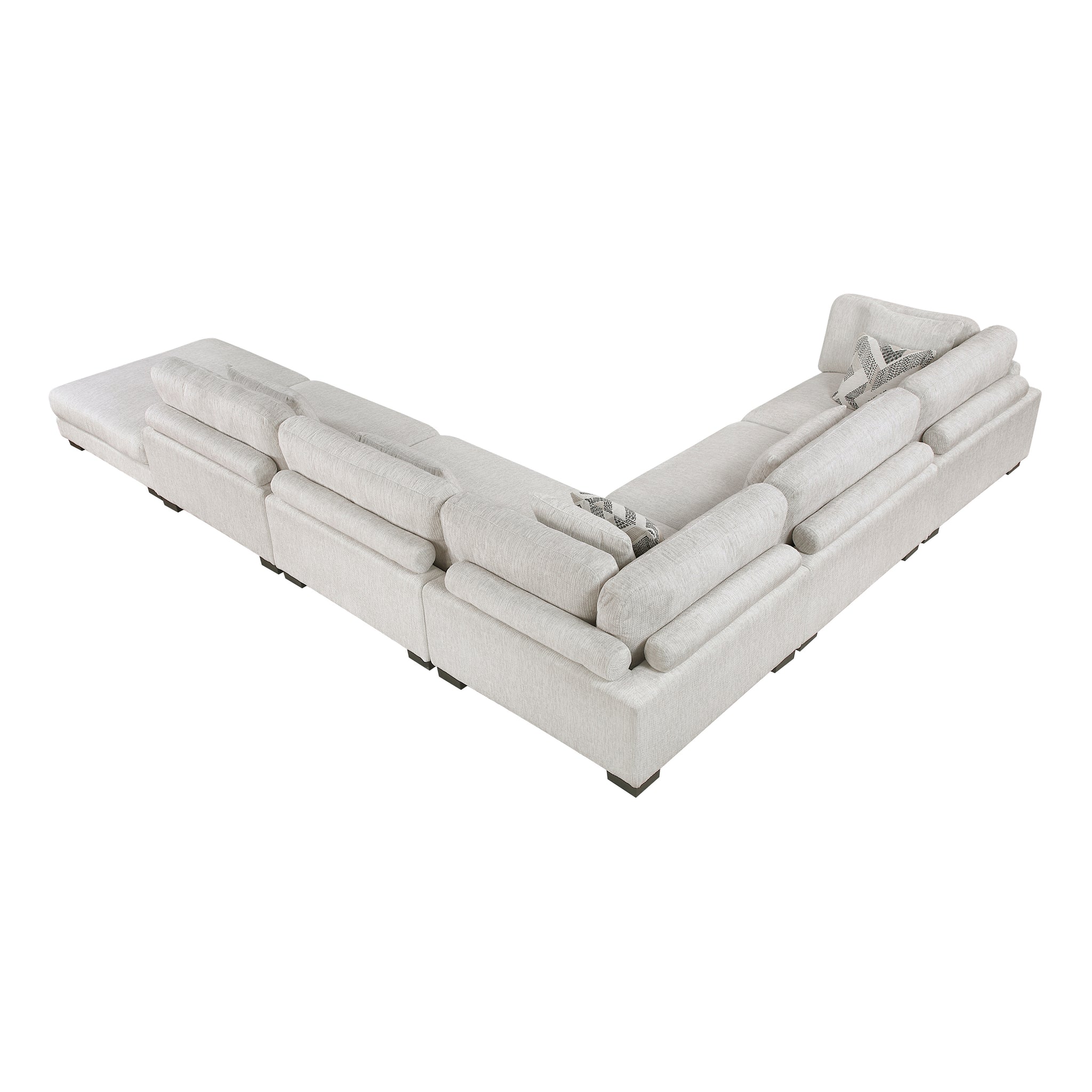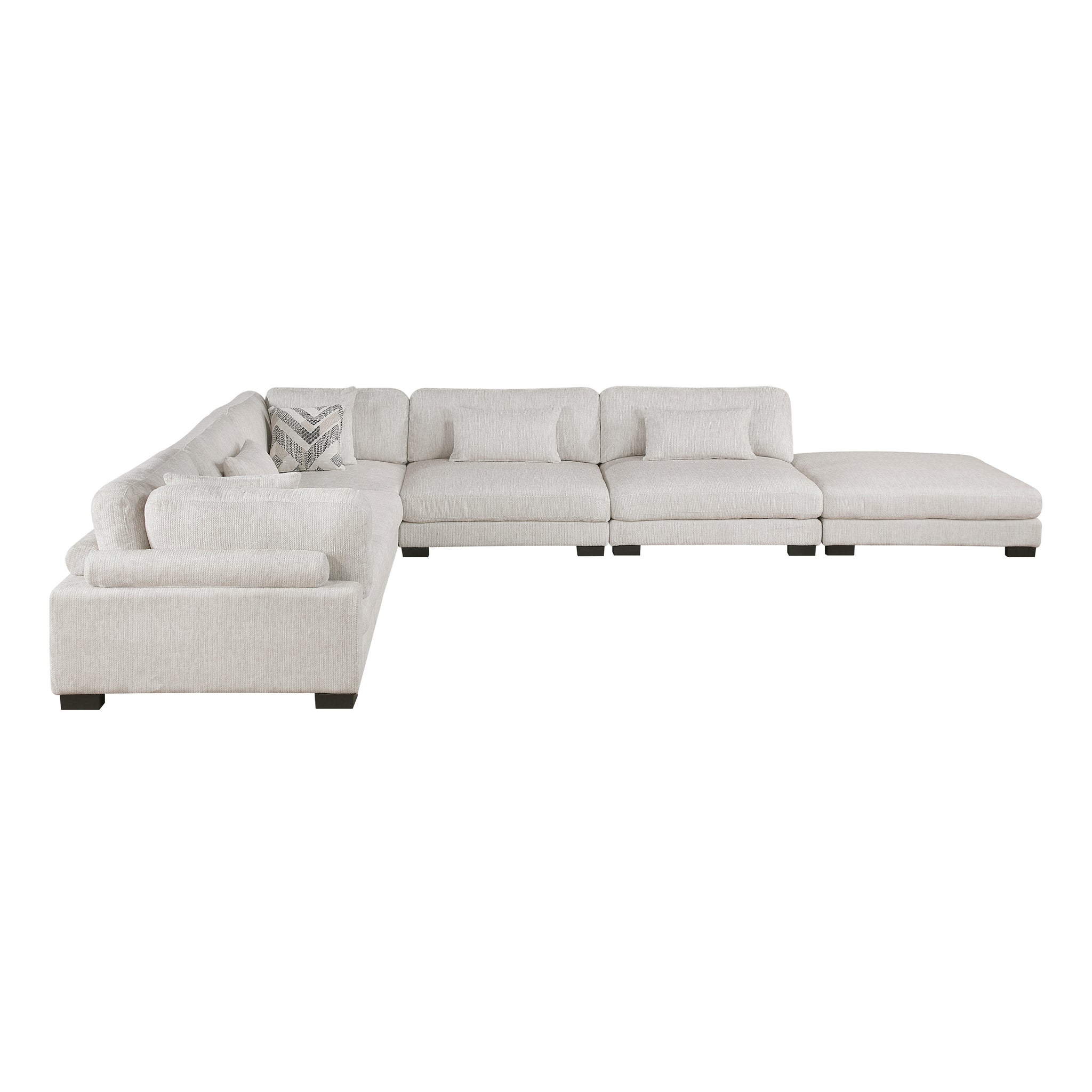 Designed to fit your space, the Abbeville Collection offers a customizable seating arrangement with the option to add or detach pieces. The 6-piece sectional configuration includes two corner units, three armless chairs, and an ottoman. Upholstered in plush textured microfiber, it creates a soft and inviting seating experience. Each corner seat features two toss pillows, an adjustable back and armrest, and reversible cushions, while the armless chair includes a lumbar pillow and reversible cushions, ensuring comfort and versatility for your living space. The collection offered in beige and brown color.