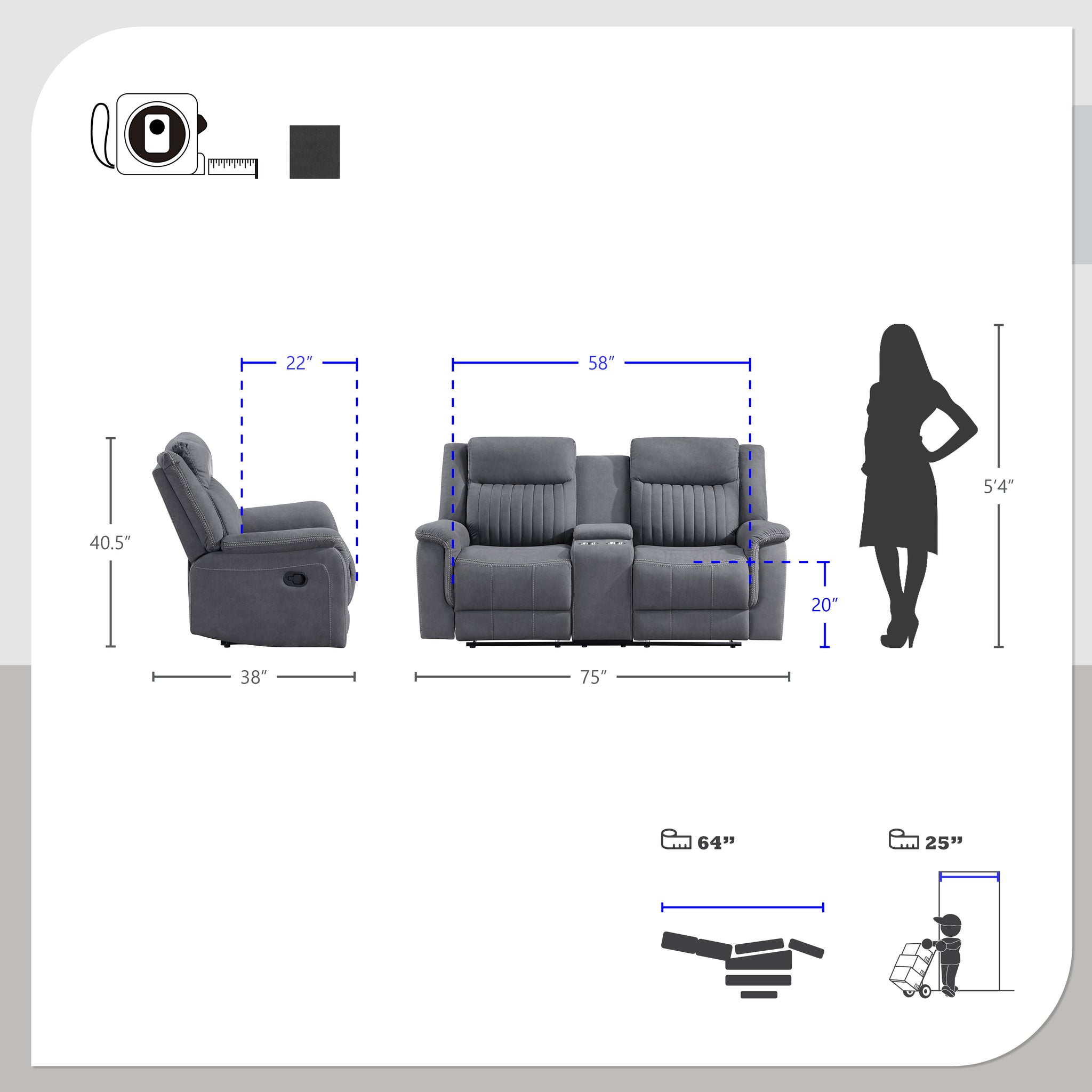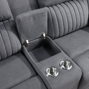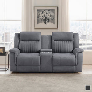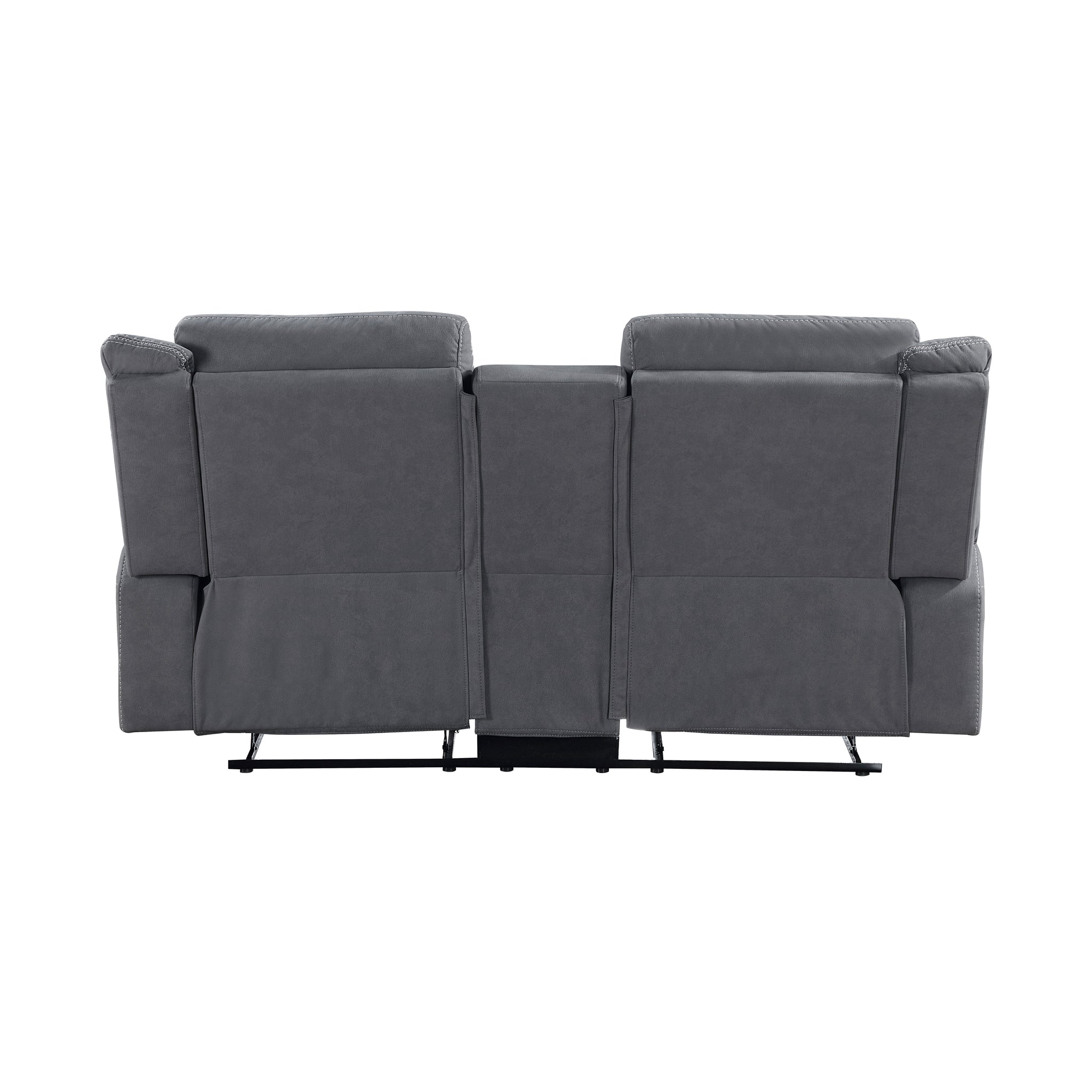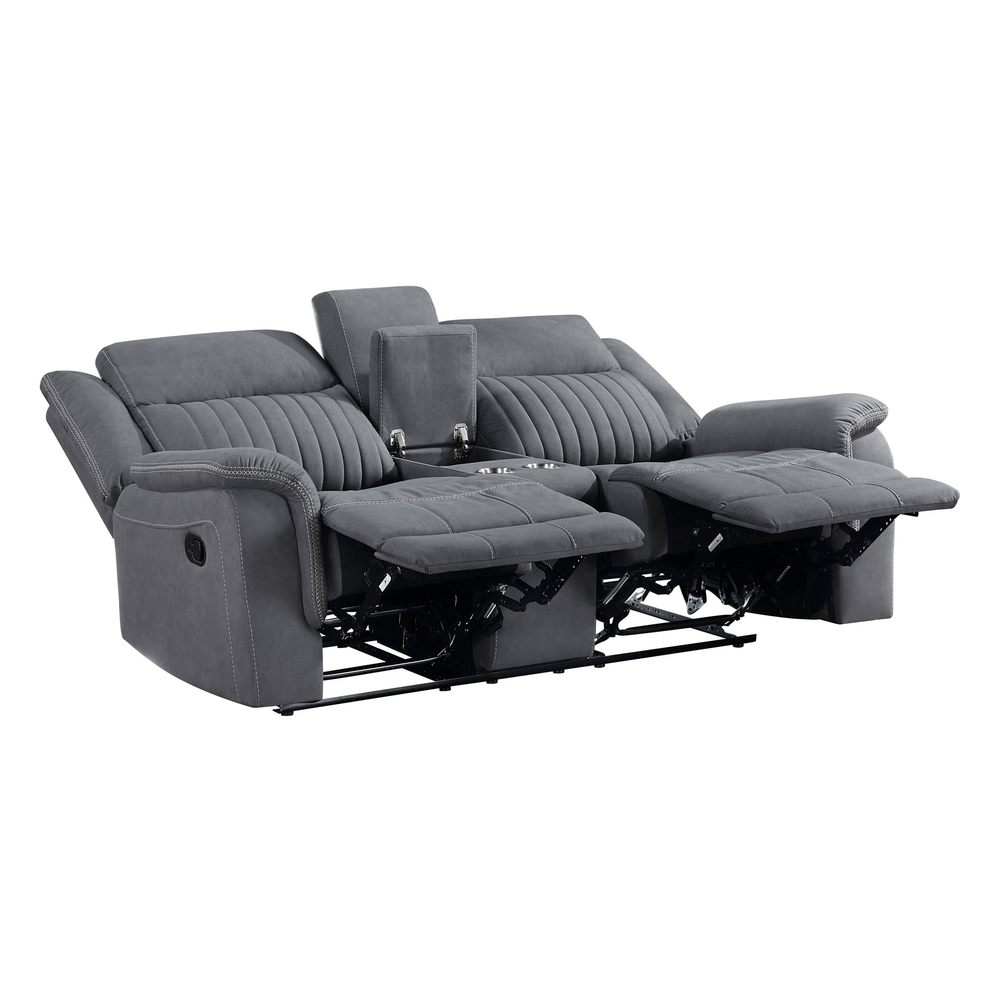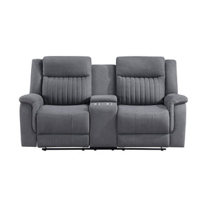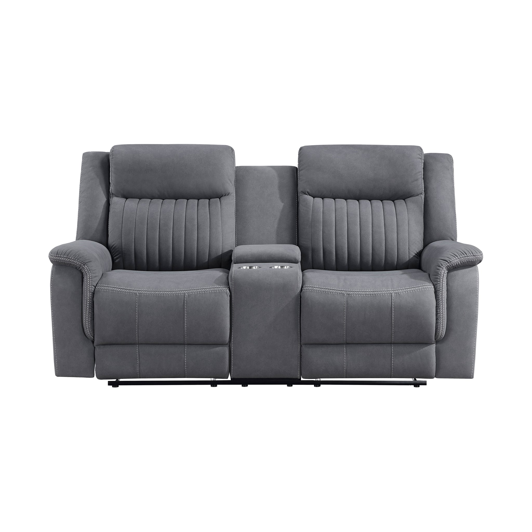Convenience and comfort provide the basis of the design of the Lenore Collection while the unfettered lines of modern design lend a casual air to the seating group’s profile. The love seat features dual reclining ends and has a console with cup holders and hidden storage space. Manual motion mechanisms allow for your reclined experience and are engaged with a pull of the side mounted tab. Gray polished microfiber presents as a neutral palette for your home’s subtle modern style.